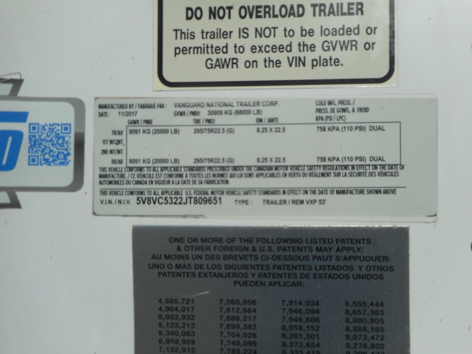 Remolque Caja Seca 53 Pies Vanguard 2018, Susp. Aire. No. VD18-5351